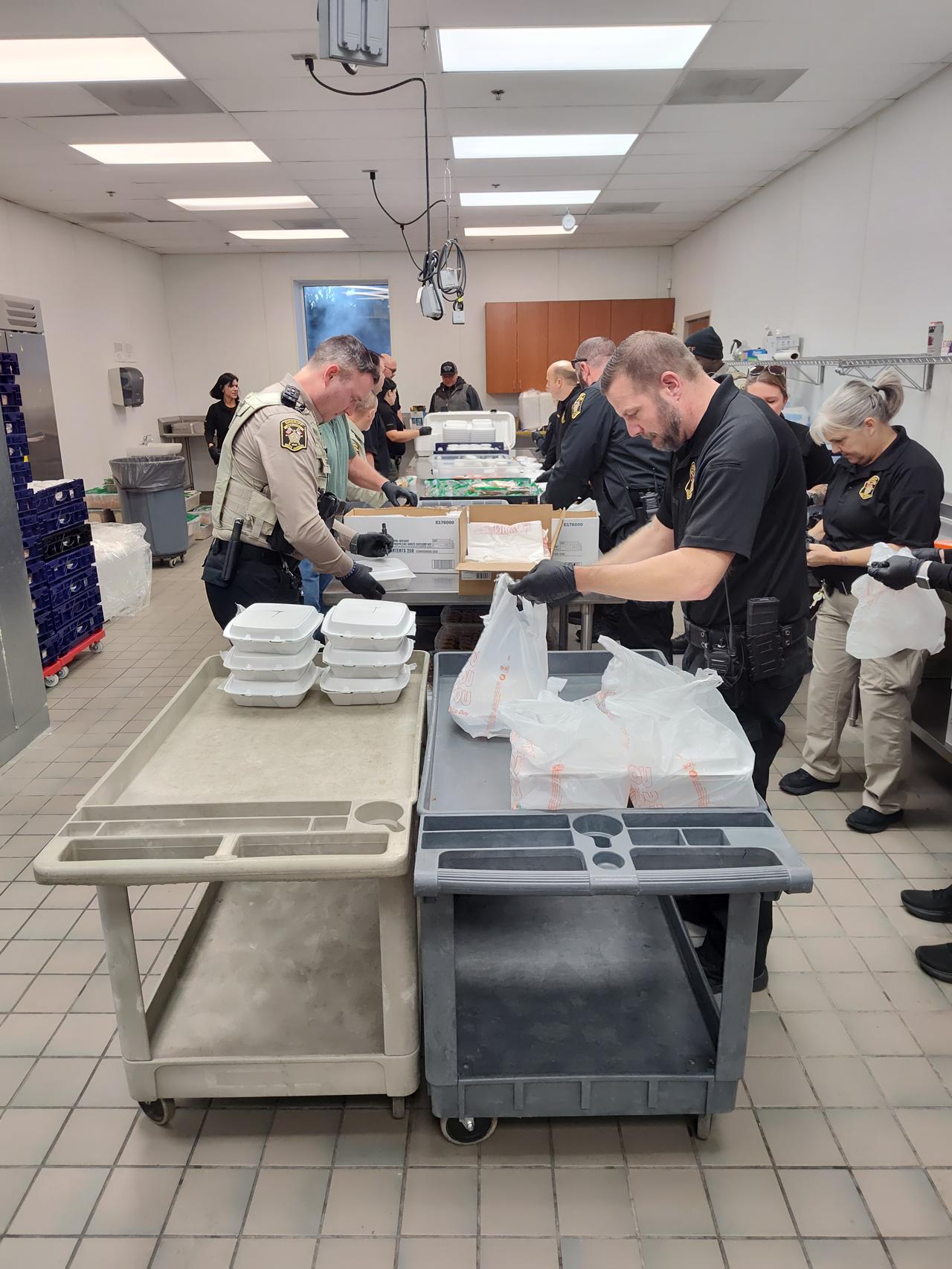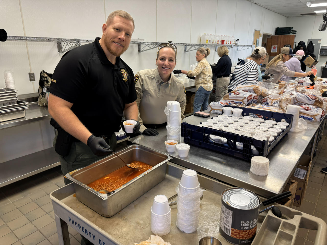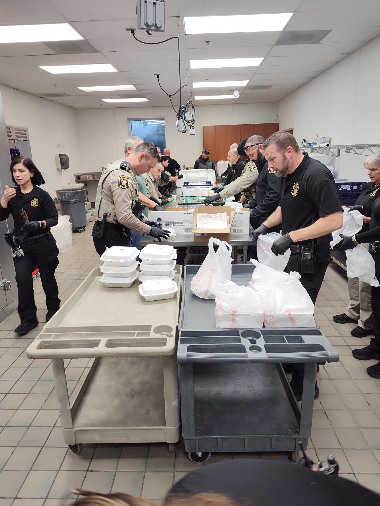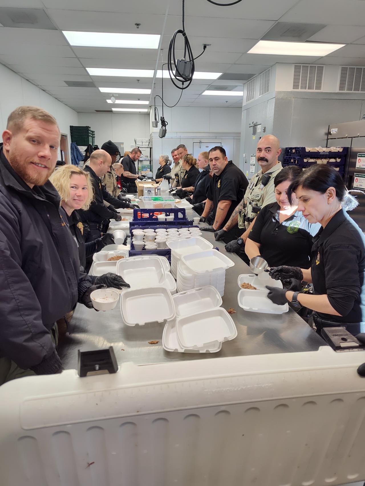 They began days ahead to make sure everything is purchased and set up ready to go the day of the barbeque. They came a day prior to begin preparing and setting up. On the morning of the event they showed up early to get everything ready to go out the door by lunch time. There were also teams of law enforcement officers delivering take-out meals to area businesses who couldn't come it to the Ag Center for lunch.