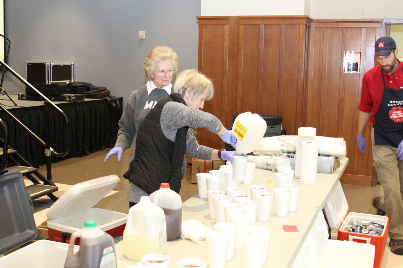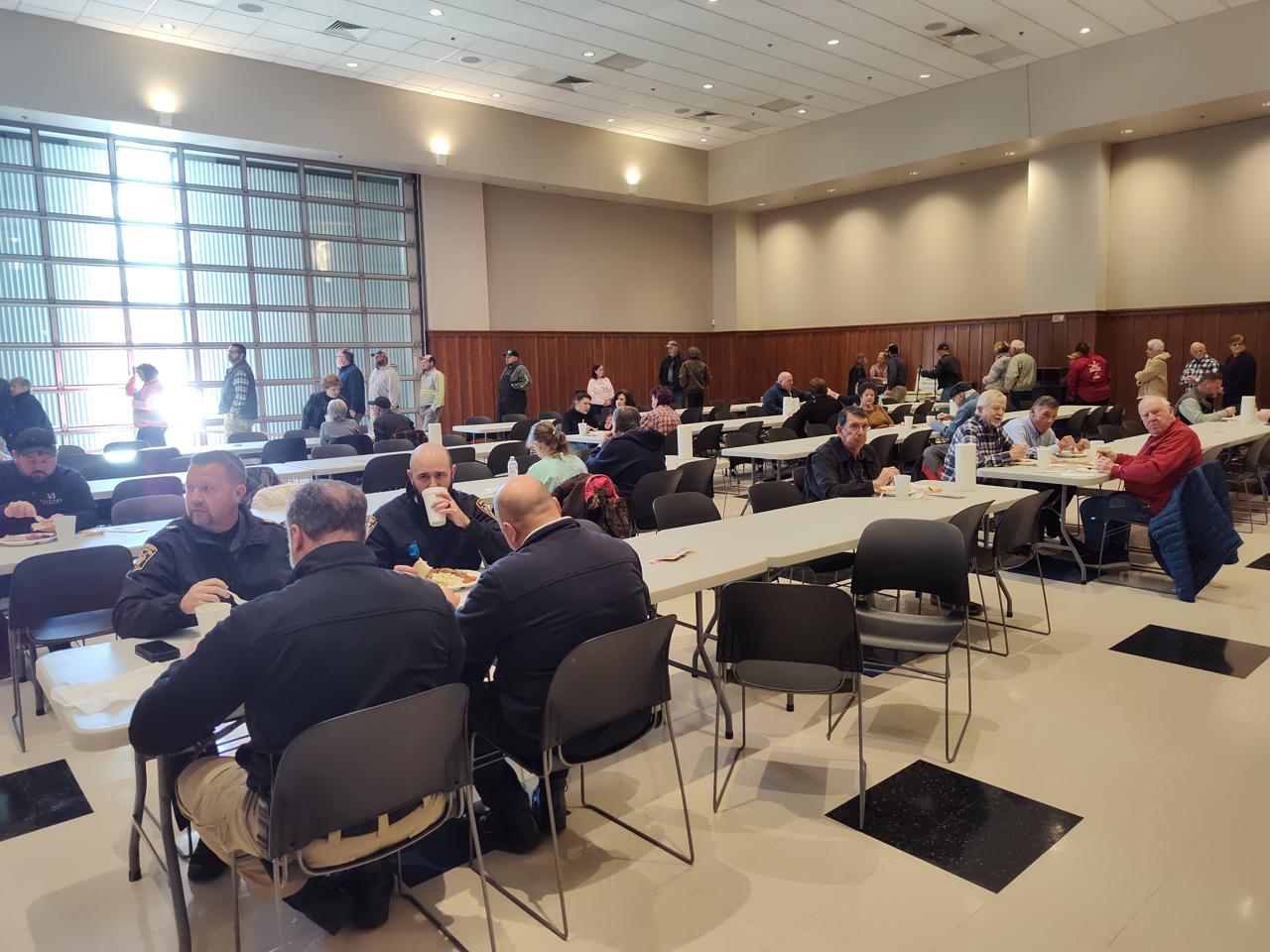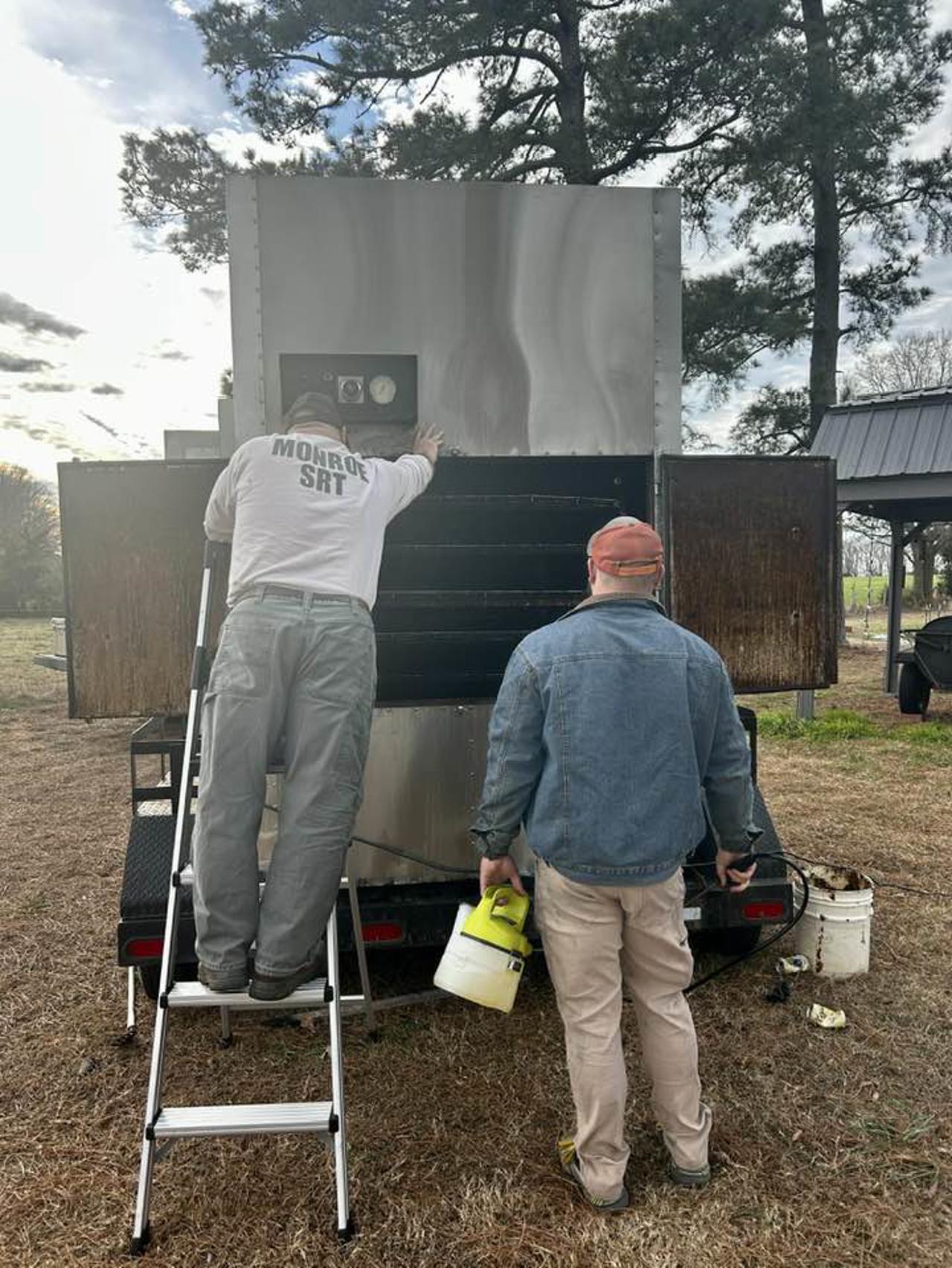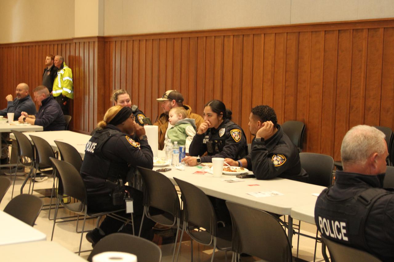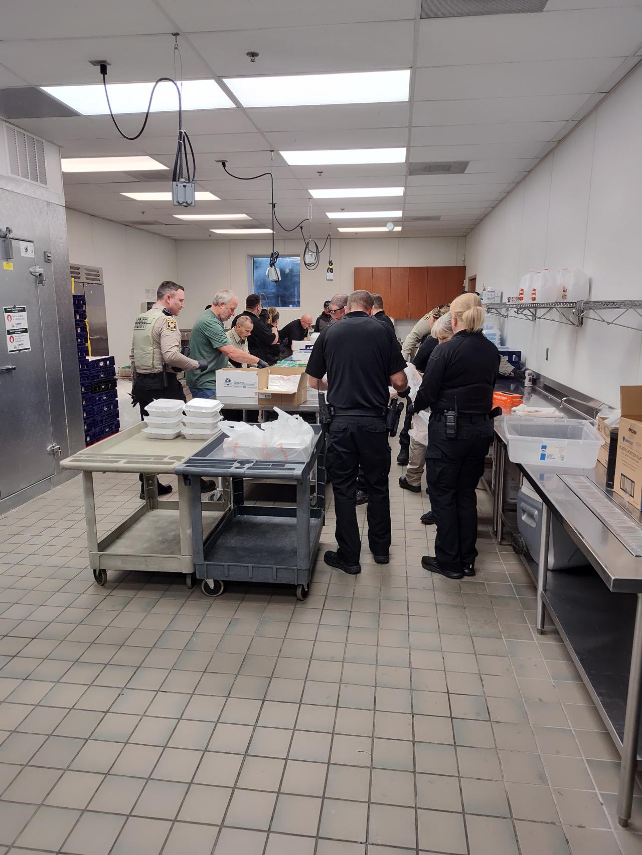 They began days ahead to make sure everything is purchased and set up ready to go the day of the barbeque. They came a day prior to begin preparing and setting up. On the morning of the event they showed up early to get everything ready to go out the door by lunch time. There were also teams of law enforcement officers delivering take-out meals to area businesses who couldn't come it to the Ag Center for lunch.