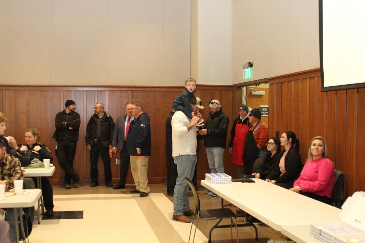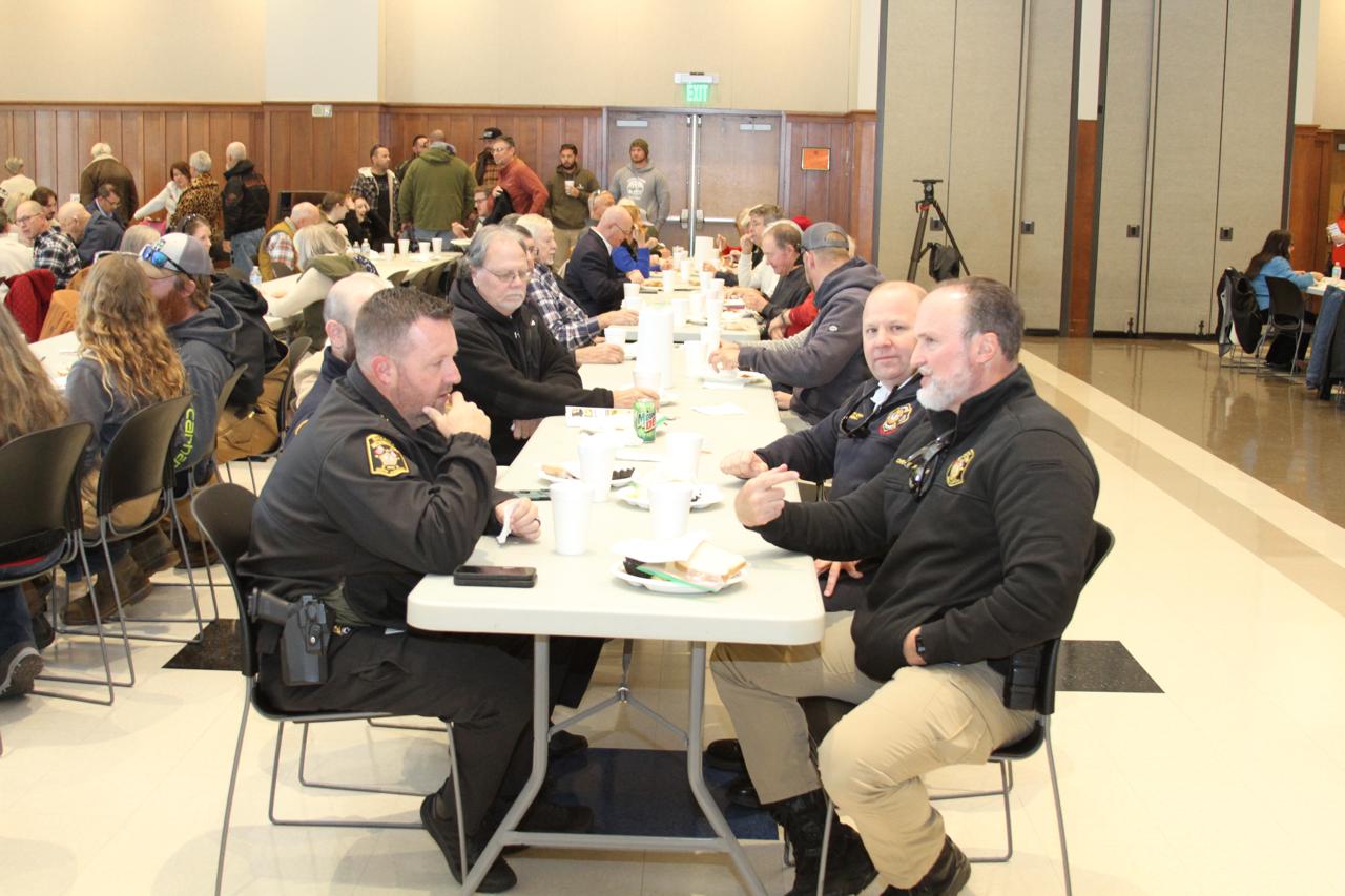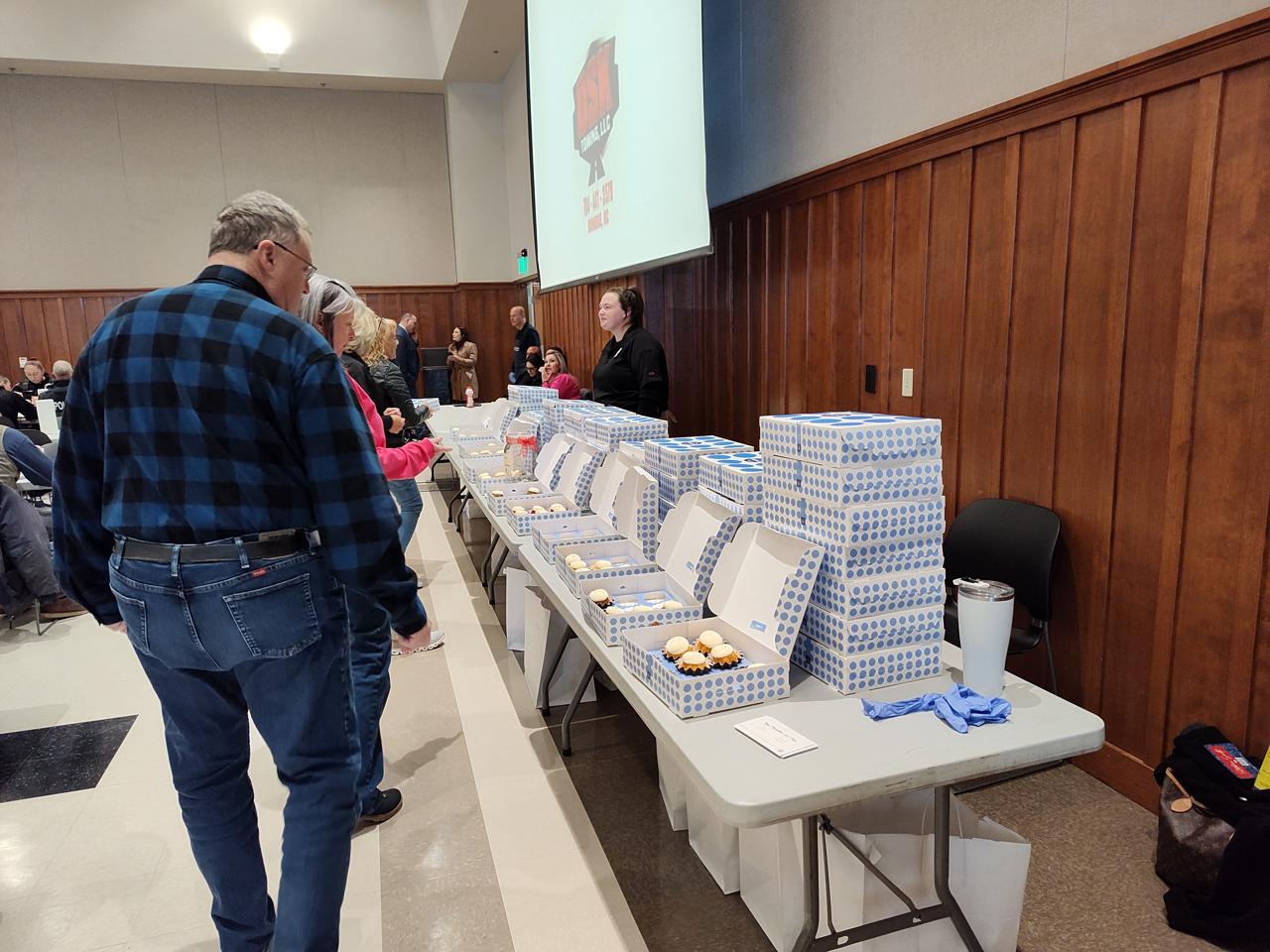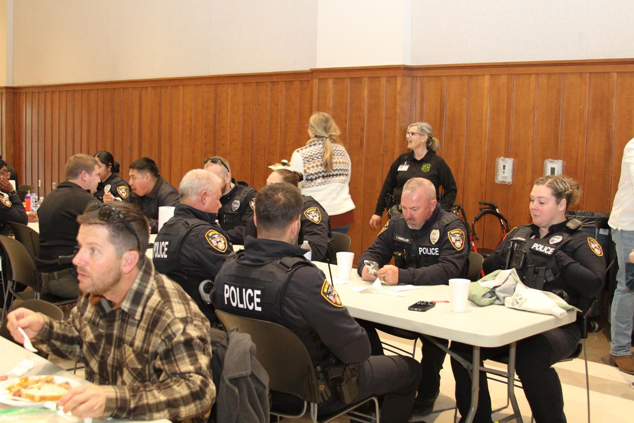 They began days ahead to make sure everything is purchased and set up ready to go the day of the barbeque. They came a day prior to begin preparing and setting up. On the morning of the event they showed up early to get everything ready to go out the door by lunch time. There were also teams of law enforcement officers delivering take-out meals to area businesses who couldn't come it to the Ag Center for lunch.