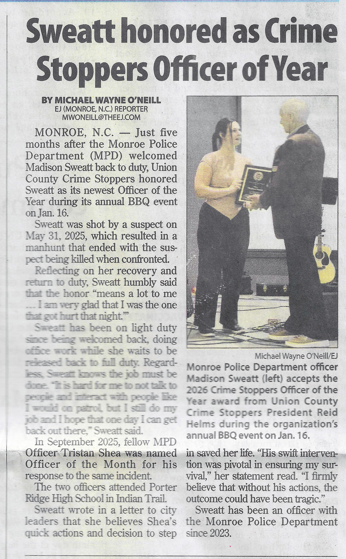 We announced the 2025 Union County Crime Stoppers Law ​Enforcement Officer of the Year.